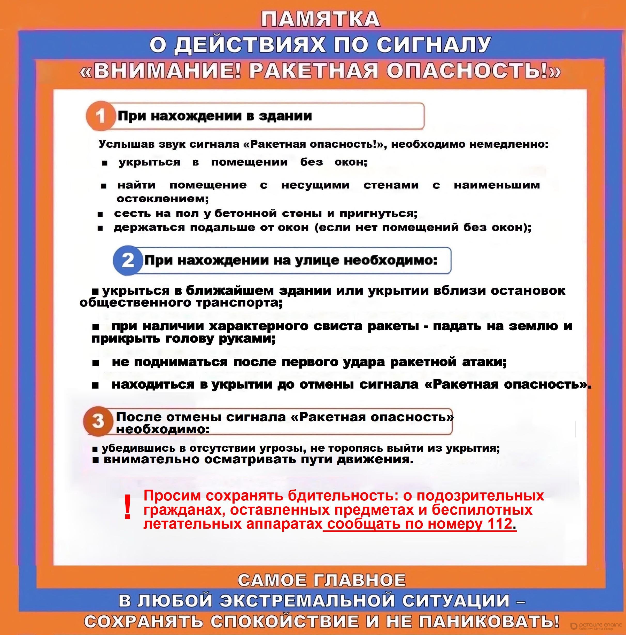 Памятка о действиях по сигналу "Внимание! Ракетная опасность!"